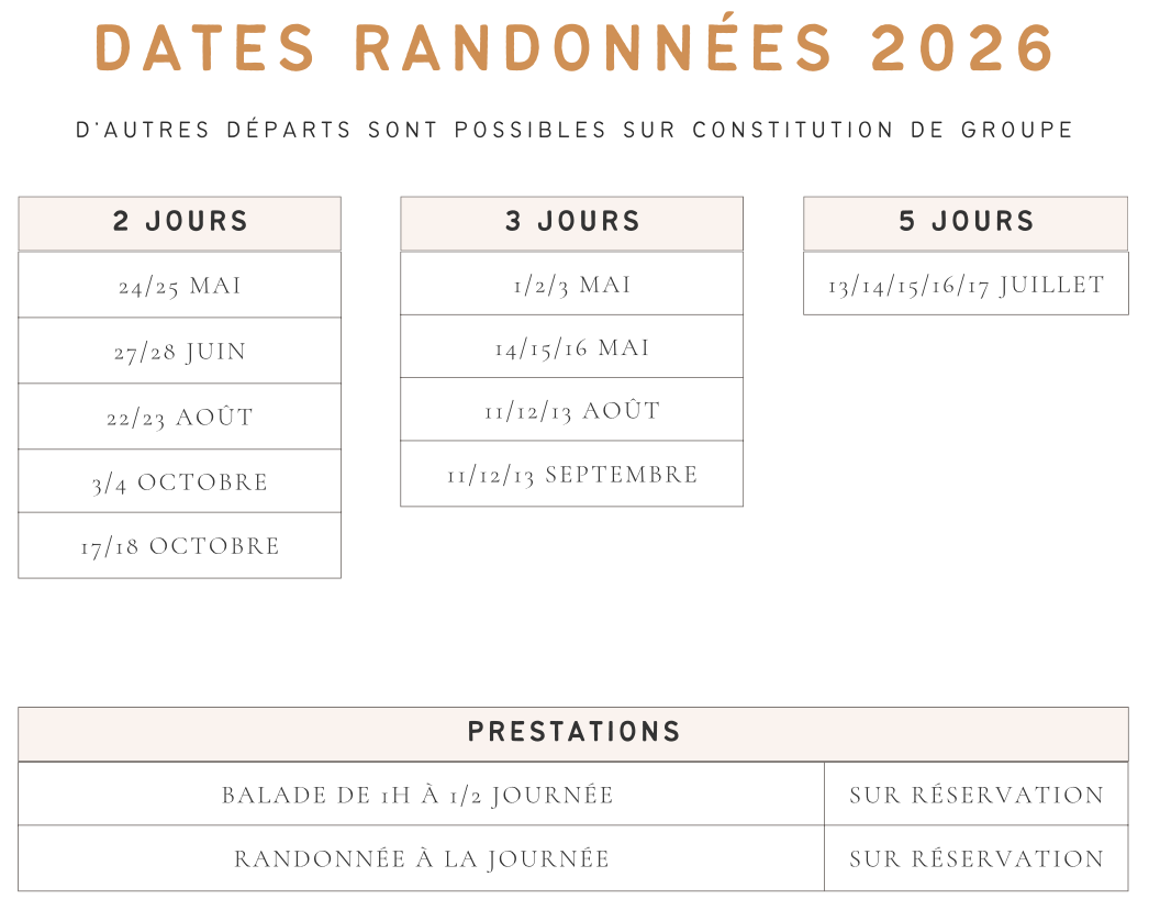 Randonnée sur 2 ou 3 jours : Tarif sur demande et selon le programme souhaité